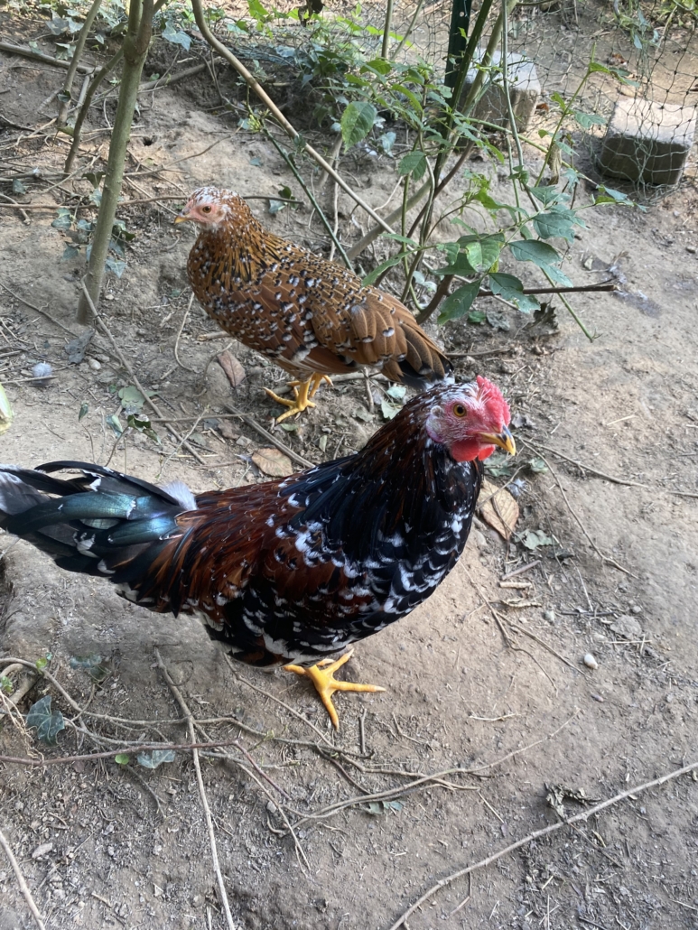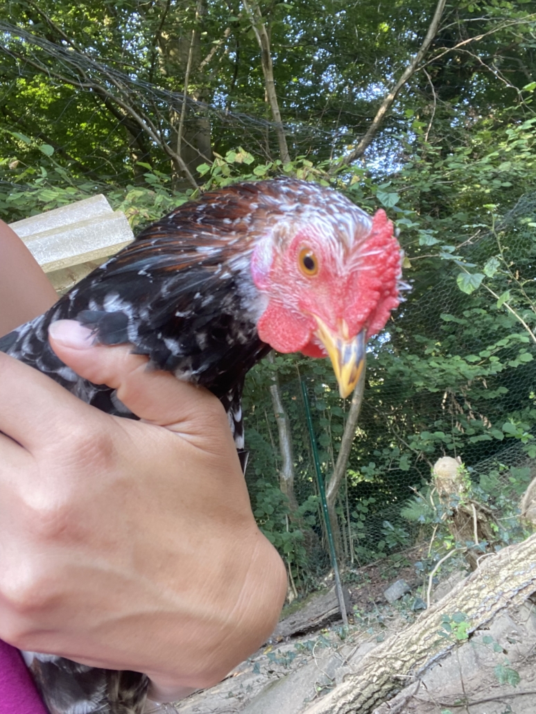 Leopold ist im April ’24 geschlüpft. Bayrische Landzwerge sind sogenannte Urzwerge. Zwerghühner die nicht von kleingezüchteten Großrassen kommen, sondern von Beginn an in sich eine Zwergrasse sind. Die Tiere kommen bunt und schillernd daher, fliegen gerne und sind schnell zahm.